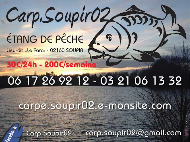 Le spot Carp.Soupir est situé dans la commune de Soupir, dans l’Aisne, en région Hauts-de-France, à proximité du célèbre Chemin des Dames, zone riche en histoire notamment liée à la Première Guerre mondiale. Le plan d’eau, bien que sa superficie exacte ne soit pas précisée dans les sources disponibles, est réputé pour la pêche de la carpe, avec la présence de carpes miroirs, communes, amour blanc et de silures. L’environnement est calme, propice à une pêche de détente, dans un cadre rural préservé. Les pêcheurs peuvent s’attendre à des prises de belle taille, dans un contexte naturel où la quiétude est de mise. Le site dispose d’une présence sur les réseaux sociaux, ce qui permet de suivre l’actualité du spot et d’échanger avec d’autres passionnés. Pour toute information complémentaire sur les modalités de pêche, il est conseillé de consulter le site officiel ou la page Facebook dédiée.